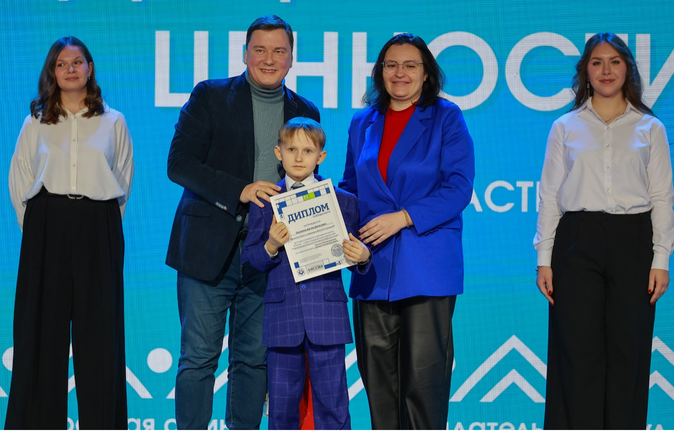 Гостей церемонии и собравшихся у экранов зрителей телетрансляции отдельно поприветствовали заместитель генерального директора НЦ “Россия” Анастасия Звягина и организатор конкурса, президент АНО “Инновационный центр развития и воспитания детей и молодёжи” Екатерина Аверкиева.